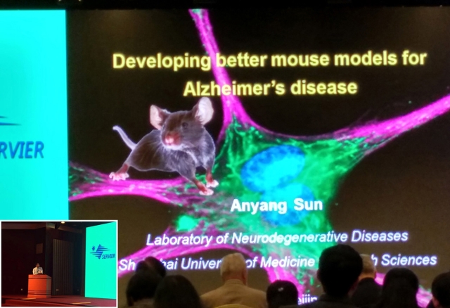 在本次大会上,中国药理学会从历届施维雅青年药理学工作者奖获奖人中遴选了5名中青年药理学学者,在《中国药理学会-施维雅青年药理学工作者奖20周年学术论坛》作大会学术报告。我校脑退行性疾病重点实验室主任孙安阳教授做了题为《Developing better mouse models for Alzheimer's disease》的学术报告,分析了阿尔茨海默病基础研究和药物研制领域所面临的一个瓶颈问题,即目前的AD动物模型临床相关性较低,导致AD治疗药物研制在临床试验阶段大面积失败;并重点介绍了他们为克服这一关键性障碍所做的探索。他精彩的研究工作获得了与会专家和同行的广泛好评。另外,上述报告也彰显了表型筛选途径相对于靶点筛选途径(Phenotypic Screening vs Target-based Screening)在中枢神经系统药物研制中的重要性,呼应和佐证了在本次大会上IUPHAR主席SJ Enna教授重点介绍的关于药物筛选策略与成功率之间关系的观点。