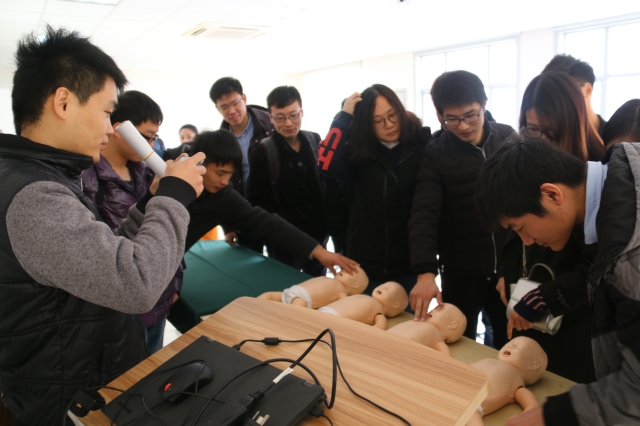 在老师和志愿者的陪伴下,研究生们分别参观了位于北苑新建成的临床医学院实验室、南苑的医学影像学院实验室以及北苑、南苑和新南苑的概貌,对学校有了总体上的印象。