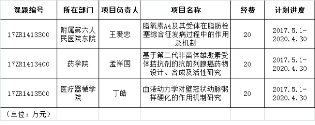 近日,2017年度上海市自然科学基金项目资助结果揭晓,上海健康医学院3项研究课题获得立项资助,资助总额为60万元,具体立项情况如下: