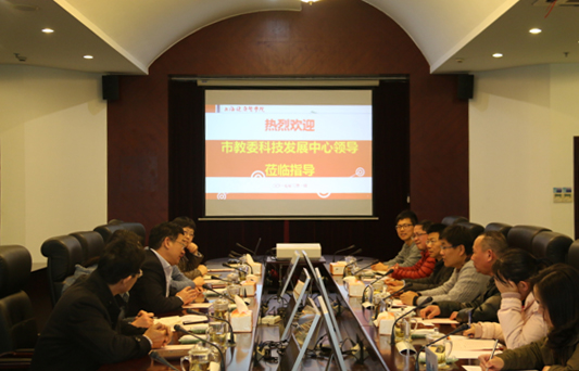 2017年3月1日下午,市教委科技发展中心主任陆震、副主任叶波等一行7人来我校进行调研、指导工作。科技处莫国民处长、药学院徐一新院长、影像学院何培忠院长、医疗器械学院李晓欧副院长及科技处有关人员参加会议,会议由张道方副校长主持。