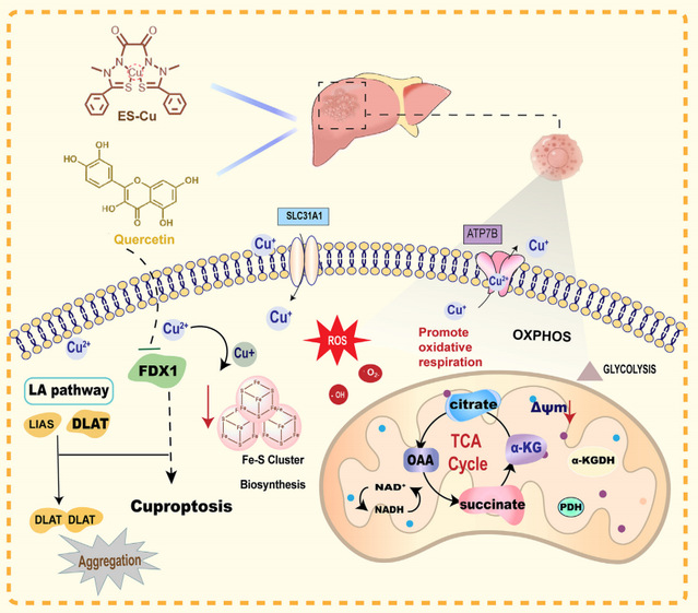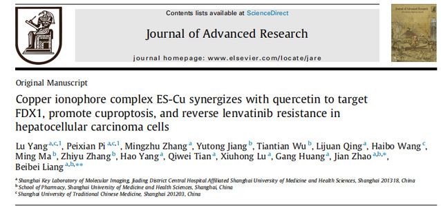 Yang L, Pi P, Zhang M, et al. Copper ionophore complex ES-Cu synergizes with quercetin to target FDX1, promote cuproptosis, and reverse lenvatinib resistance in hepatocellular carcinoma cells. J Adv Res. Published online September 1, 2025. doi:10.1016/j.jare.2025.08.066