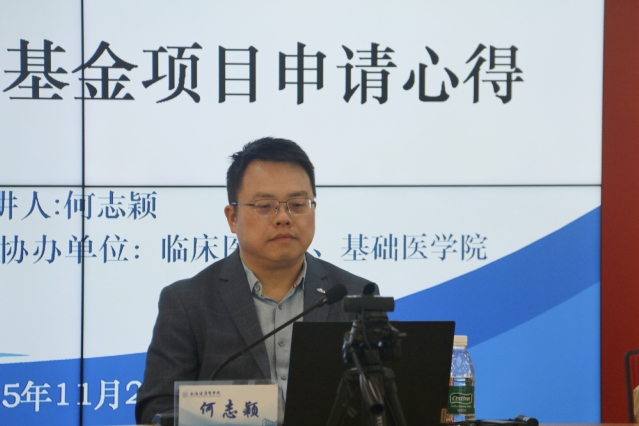 11月27日下午,科技处联合临床医学院、基础医学院在北苑1号楼500会议室成功举办第16期“康·歌”学术系列讲座。本次讲座特邀同济大学附属东方医院再生医学研究所执行所长、上海干细胞转化医学工程技术研究中心主任何志颖教授,围绕“国家自然科学基金项目申请心得”进行专题分享。讲座由科技处组织,学校及附属医院科研骨干、青年教师及研究生等50余人通过线上线下结合方式参会。